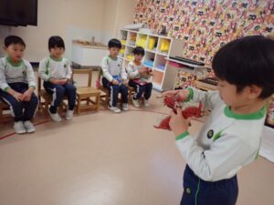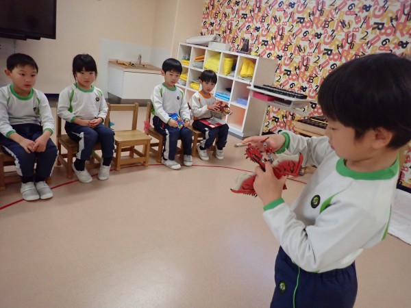 今日はShow and Tellがありました。お誕生日プレゼントにもらったお気に入りの物について発表しました。大きな声で発表し、友達の発表は楽しそうに聞いている様子が見られました。いくつか質問もする事ができました。次回のShow and Tellも楽しみですね。