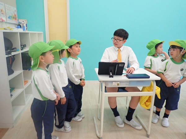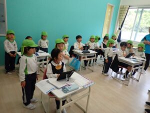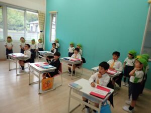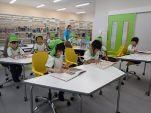 5歳児クラスで初等部の見学へ行きました。子どもたちは1年生から6年生の教室を見学し、教科ごとにどのような学びをしているのか、教室や小学生の様子を興味津々に見ていました。疑問に思ったことや、知りたいことを初等部のお兄さんお姉さんに質問する姿もあり、楽しく交流することができました。