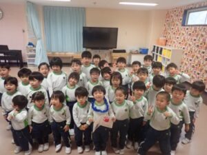 今日は2月生まれの子どもたちのお祝いをしました。陽気な水泳の練習を終えた後、子どもたちはとても幸せで元気いっぱいでした。ハッピーバースデーの歌を歌い、誕生日の子どもたちはバースデーカードを受け取りました。その後は、ちょっとした歌の発表があり、子どもたちはとても楽しんでいる様子でした。