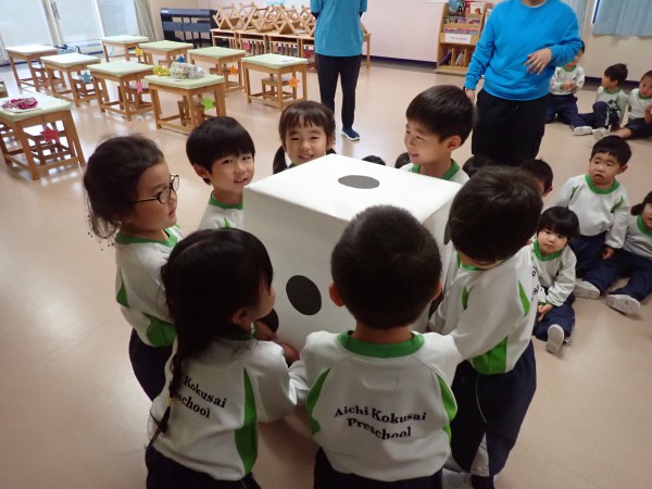 その後、大きなサイコロを転がし、当てた数字と同じ番号の質問に答えるゲームをしました。楽しい誕生日会を過ごした思い出が、いつまでも子どもたちの心に残ることを願っています。