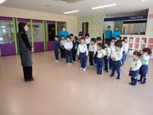 今日は終業式がありました。一年間の締めくくりとして、子ども達はこれまでの成長を振り返りながら式に参加しました。式では園長先生からのお話を真剣に聞く姿がありました。お友達や先生との思い出を振り返る時間もあり、笑顔や少し寂しそうな表情が見られる場面もありました。一年間を通して、たくさんの事を経験し、挑戦し、成長した子どもたち。お友達と助け合ったり、自分の思いを伝えたりしながら一人ひとりが大きく成長しました。