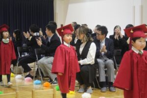 暖かな春の日差しに包まれて、今日、子ども達が卒園式を迎えました。入園した頃の小さな姿を思い出しながら、成長した子ども達の頼もしい表情に胸がいっぱいになりました。それぞれの歩幅で一歩ずつ成長してきた日々を振り返ると、たくさんの笑顔や涙、そして頑張った姿が思い出されます。この園で過ごした時間が、子どもたちにとってかけがえのない思い出となり、これからの新しい一歩を踏み出す力になることを願っています。