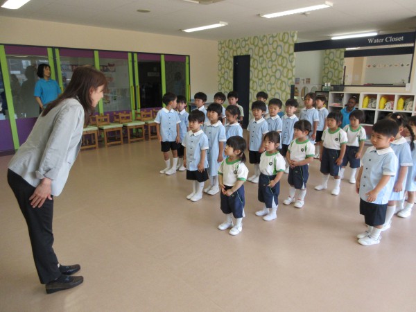 園長先生のお話にあった、2学期は運動会、ハロウィンパーティー、クリスマスパーティーなど、楽しいイベントが沢山あることに期待し、今学期も元気に過ごすことを約束して始業式を終えました。