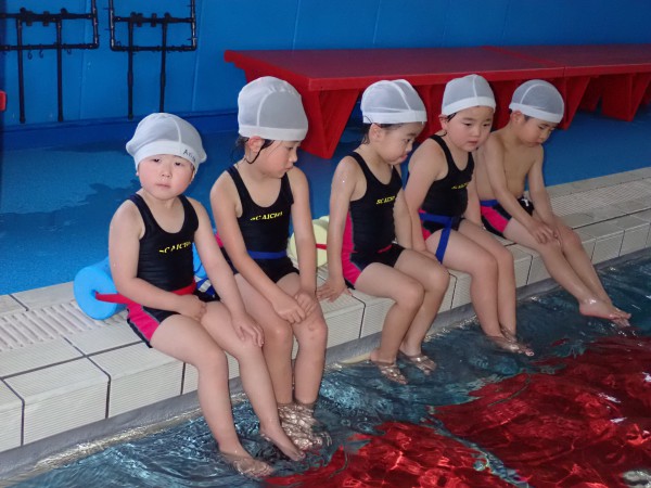 かに級クラスでは、ジャンプや水中歩行をしました。友達と一緒に、楽しくレッスンに参加している様子が見られました。顔付けにも、すっかり慣れた様子で取り組む姿が見られました。