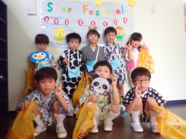 ジンベを着て元気いっぱいに登園し、いつもとは違う雰囲気にこれから始まる七夕祭りに期待してワクワクしていました。