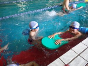 子どもたちは週に1度、水泳の授業に取り組んでいます。最初、一年生には緊張した様子も見られましたが、クロールの息つぎや腕の回し方など、練習を重ねていくうちに、自信をもって泳ぐことができるようになってきました。また、他学年ではバタフライでの腕の広げ方や脚の動かし方などを繰り返し練習し、一人ひとりが記録会に向けての目標を決めて頑張っている姿が見られました。