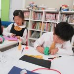 Today in Arts and Crafts, the students made Christmas wreaths together. The students used origami paper to make a tiny Santa Claus, and weaved together green construction paper to make the wreath. They all helped each other to put together nice wreaths. They finished the class showing each other what they had made and talked about Christmas. Everyone had a great time!