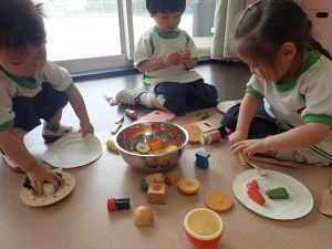Today the kids were very excited and happy to be playing with a kitchen set. Each of them were given a plate and their favorite food ingredient. They had fun `pretend` cooking, mixing in a pot, and cutting vegetables. Because of that, the kids got more interested knowing their food.