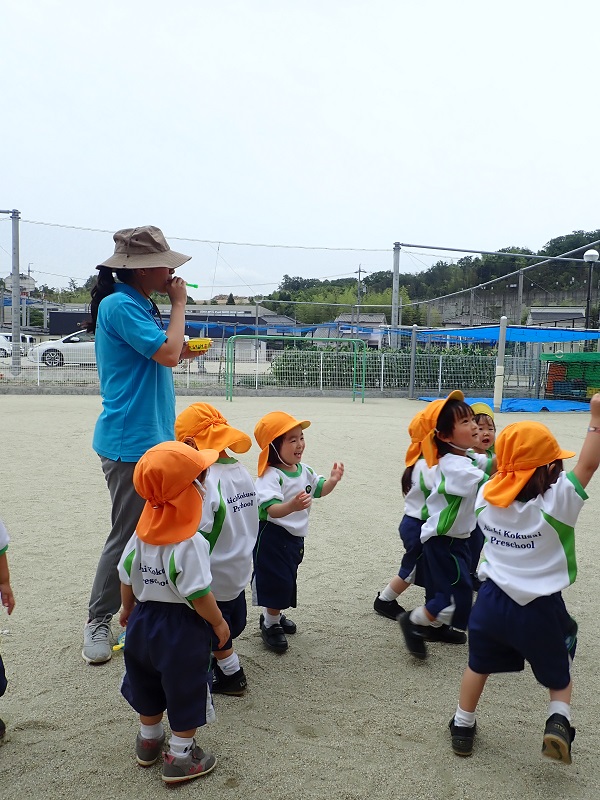 Today the kids played with bubbles. They had fun chasing and popping the bubbles blown by the teachers. They also had the chance to blow bubble by themselves. They had so much fun.
