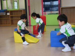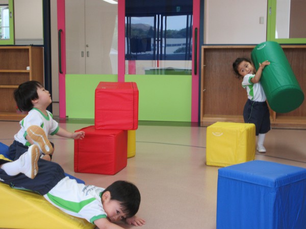We played with large cushion blocks. They made a car, a slide and had fun playing with each.