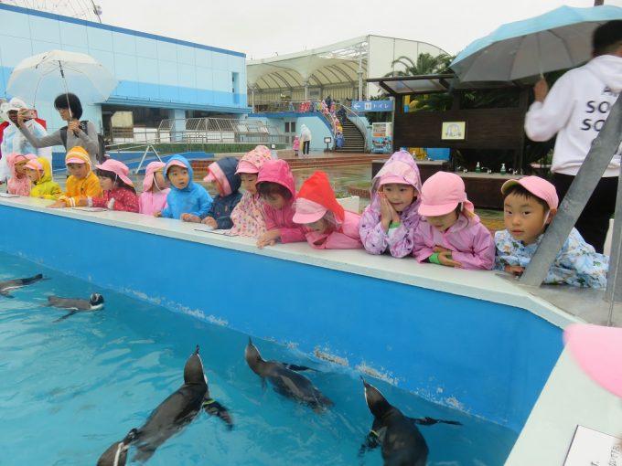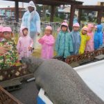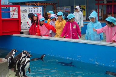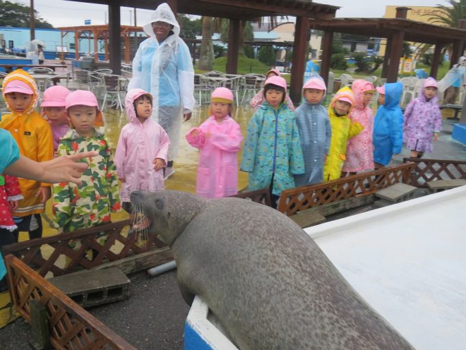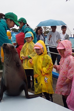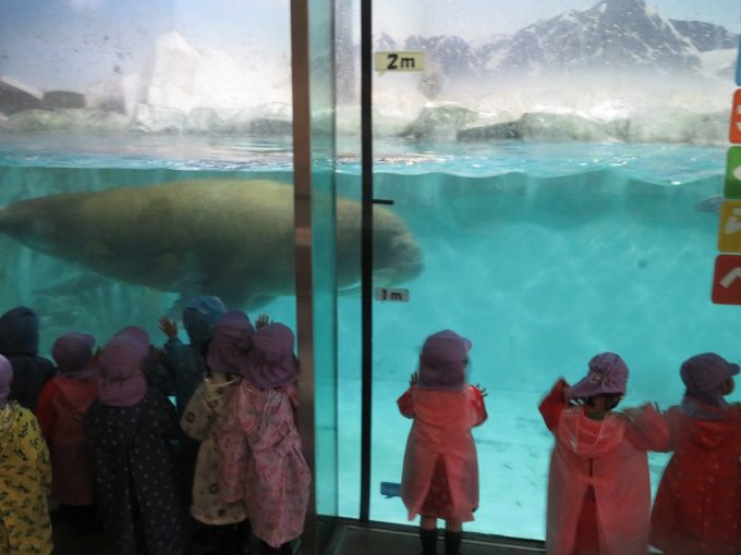 It was rainy, but we could watch a dolphin show and could touch a sea lion. At the dolphin show, kids were so excited when the dolphins flipped or jumped. At the walrus tank, kids were surprised by their sizes and when the walruses went upside down. We had a fun field trip!