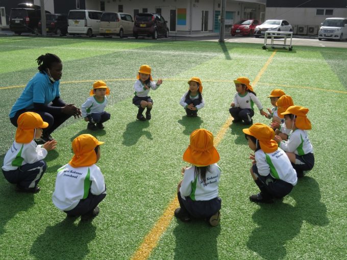 Children made a circle and run behind other players in turns and drop a beanbag instead of the usual handkerchief. It was the first time for some of the kids to play drops the handkerchief game. They had lots of fun and did not want it to end.