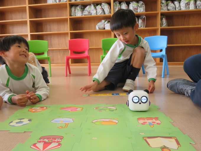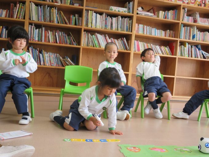 For today’s lesson the kids practiced instructions using loop cards, multiplication cards, and parenthesis cards. We’re guiding them to remember the previous lessons depending on where they stumble. They went to the book, next to the merry-go-round, to the bed, and went back to the original spot. It was so fun and amazing to see them solved the problem.