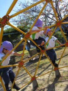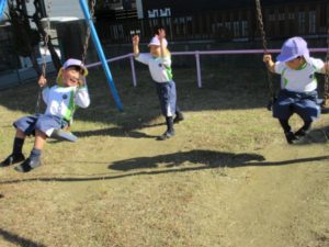 They walked at the nearby park, observing the traffic rules. When crossing the road, they made sure that there were no cars or motorcycles coming on their way, and then they raised their hand and was able to cross safely. At the park, they played a lot with their favorite playground equipment, including the big slide and jungle gym.