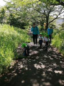 Today we went to the Sakura tunnel for a walk. It was their first time to go to the tunnel. Before they go outside, they talked about flowers, insects and what is dangerous to touch. They saw butterflies, bees and beautiful flowers on the way. They had so much fun today.