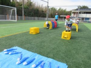 Sports day is getting closer day by day and today we practiced obstacle course relay. They moved their bodies a lot, jumping in the rings and crawling through the tunnels. GO! GO! Red team, GO! GO! White team, they cheered with loud voices. Let’s have fun and do our best on upcoming sports day.