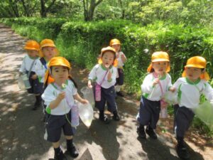 We walked along the promenade near the nursery, along a tree-lined path of fresh greenery. We enjoyed our walk listening to the birds and picking dandelions.