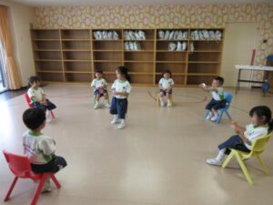 Everyone learned the rules of Musical Chairs and Fruit Basket game and had fun. In musical chairs, it was fun to sit down quickly when the piano stopped playing, so we played it over and over again. In the fruit basket game, everyone liked the call of “fruit basket” that made everyone move at the same time, and everyone enjoyed fighting over chairs.