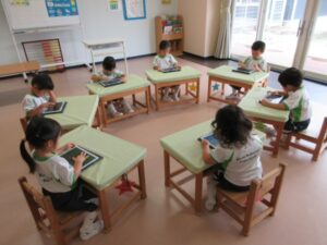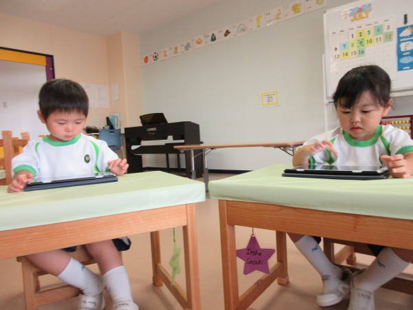 The children enjoyed choosing various types of apps, such as apps where they listen to English and choose animals or colors to increase their level, and apps where they can draw and color.