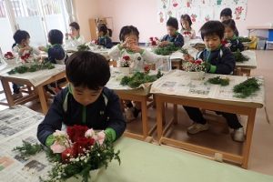 December’s flower of the month is Poinsettia, also known as Christmas Star. It means that Christmas is approaching very soon. And for the last flower arrangement for this year, our main flower was red roses which symbolizes courage. Then to make it more appealing to everyone’s eyes, we also put other flowers like pink and white sweet pea and small apple to give a special meaning to it as knowledge. To decorate more and have different colors into it we also used white baby’s-breath and Japanese red-cedar. We look forward for more amazing beauty of flowers next year’s flower arrangement.