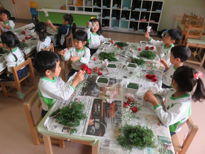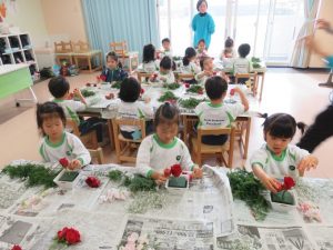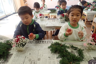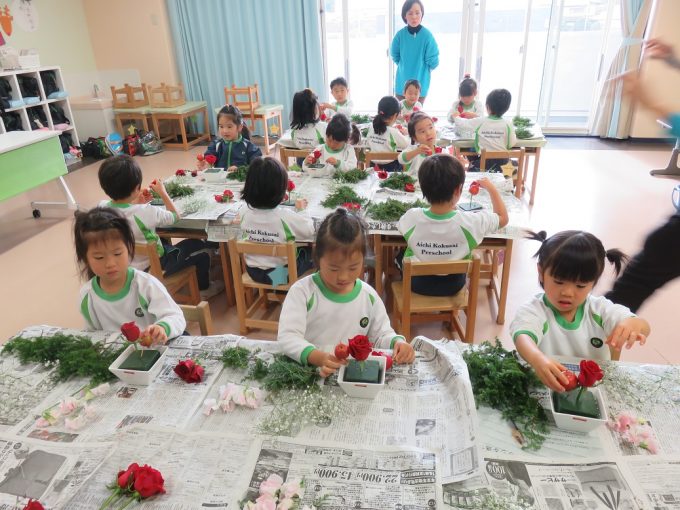 December’s flower of the month is Poinsettia, also known as Christmas Star. It means that Christmas is approaching very soon. And for the last flower arrangement for this year, our main flower was red roses which symbolizes courage. Then to make it more appealing to everyone’s eyes, we also put other flowers like pink and white sweet pea and small apple to give a special meaning to it as knowledge. To decorate more and have different colors into it we also used white baby’s-breath and Japanese red-cedar. We look forward for more amazing beauty of flowers next year’s flower arrangement.
