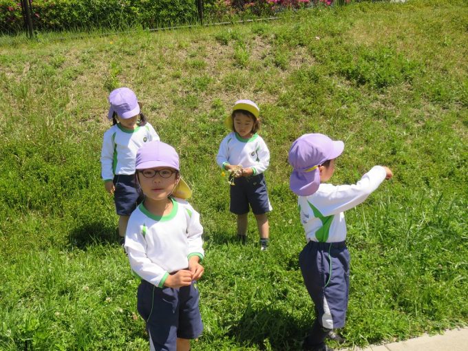 This morning Dolphin and Whale Class went to the big park to play. We walked about 10 minutes on foot. When they arrived there, they played with the grass, swing, slide and caught some insects like butterflies and bugs. Today’s free playtime was such a great one!
