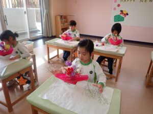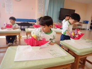 Today we did flower arrangement with a theme of Gentle Memories. We used delicate flowers namely, sweet pea and baby’s breath. To make the flower arrangement more beautiful we also added a non-woven ribbon and oasis sheet. Everyone did great in handling the delicate flowers gently.