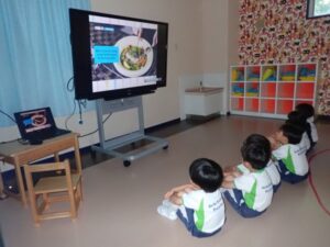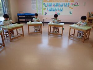 Children learned table manners for the first time today. They watched a video on various restaurant settings and table manners for kids. They later made hamburger steaks with play dough and practiced cutting with a fork and knife. They also learned how to use a spoon to drink soup without scraping the bowl. It was a good experience for children. They had fun learning how to hold fork and knife to cut food even though some children struggled.