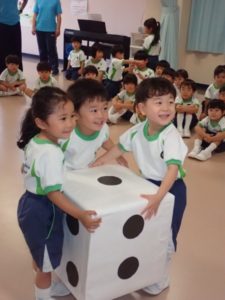 We held a birthday party for those born in June. We sang Happy Birthday song and listened to the children’s dreams for the future. For recreation, we played a dice game together. We all read the theme that came up, and enjoyed singing and presenting in classes and groups.