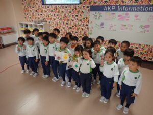 Today we had a birthday party. We celebrated the birthdays of our friends born in November. We all had a great time singing songs and presenting cards and wreath. It was most exciting talking about the presents they would love to get. The birthday children then shared with everyone their awesome future dreams