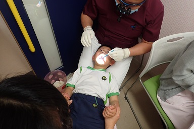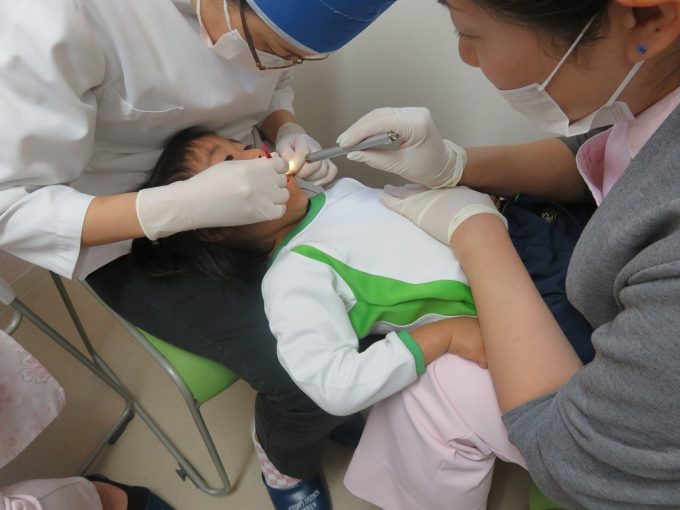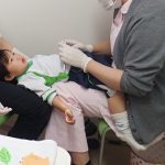 Today, the dentist came to our school. Students lined up one by one so they could get their teeth checked by the dentist. They politely said “Onegaishimasu” and “Arigatou Gozaimasu” and they received a dental mirror that they can use at home. Students were happy to get the mirror from the dentist!