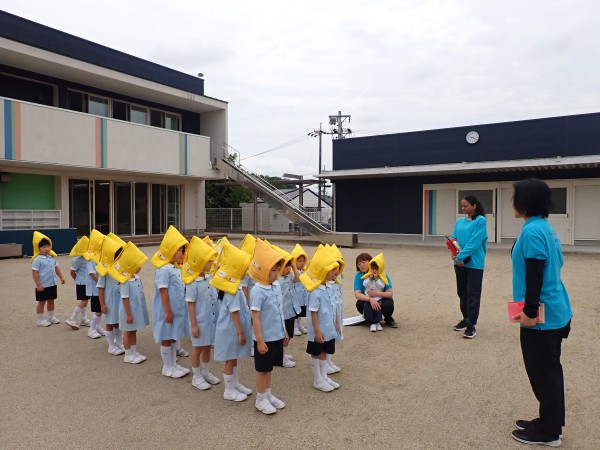 When an earthquake announcement was made, children immediately hid under their desk and waited quietly until the next announcement was made. They could listen carefully to what the teacher had to say, keep the promise of “OHANASHIMO”, and evacuated quickly to the designated space.