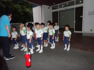 The evacuation drill took place while the children were playing, but they followed the instructions of the teacher nearby and evacuated quickly.