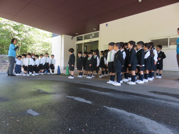 We had a fire drill today. This drill helps the students to be aware physically and mentally when the fire breaks out. The kids were able to follow the 「o・ha・na・shi・mo」rule and listened to the teachers’ instructions. They were able to evacuate their classroom quietly and orderly to the parking lot of the main entrance.
