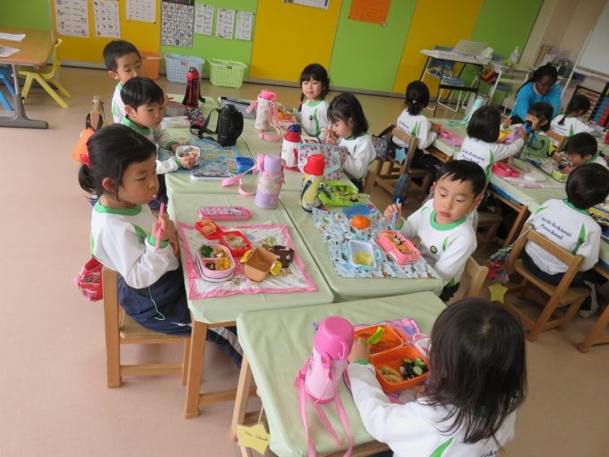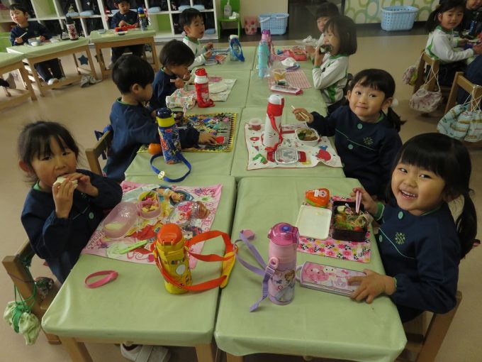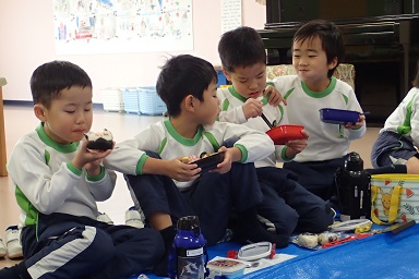 Today the kids brought lunch box that their mothers made at home. Everybody was so excited to eat their lunch.