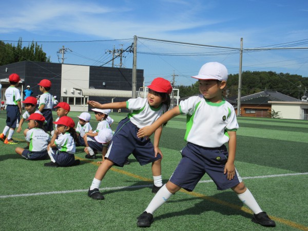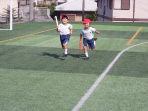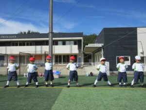 In anticipation of next week’s Sports Day, the children practiced with enthusiasm, participating in activities such as marching, relay races, cheering contests, and dancing. They learned how to cheer on the students from the elementary school and cheered on the fast relay runners. They were also interested in practicing not only their own events, but also those of other grades.