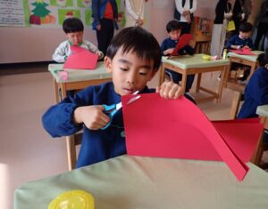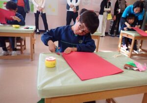 Today, parents joined us during art time and the children cheerfully greeted them with “Good afternoon!” The children seemed a little nervous in the unusual setting, but they listened carefully to the teacher and were able to engage in the art activity. Thank you for coming and making today’s art class even more memorable.