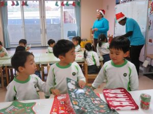 Today Dolphin and Whale Class played BINGO altogether. Each one of them got a BINGO card and teachers draw the number from roulette. Everyone was having so much fun and excitement as we were presenting numbers and they’re reaching for the goal for BINGO. At the end everyone got to have their present and it was so fun!