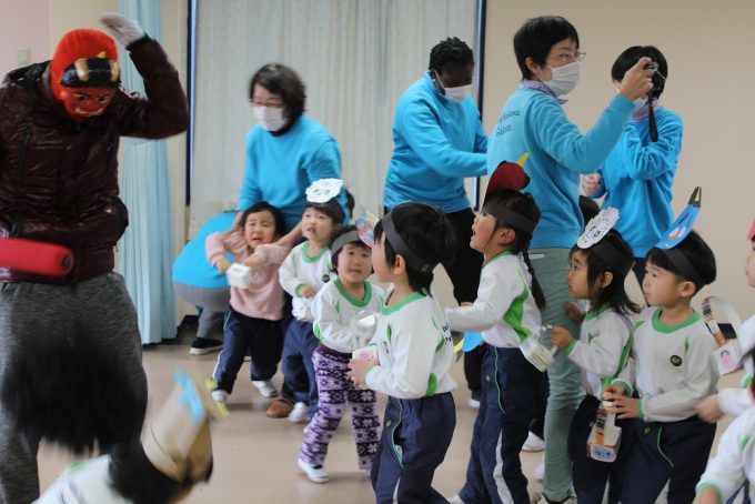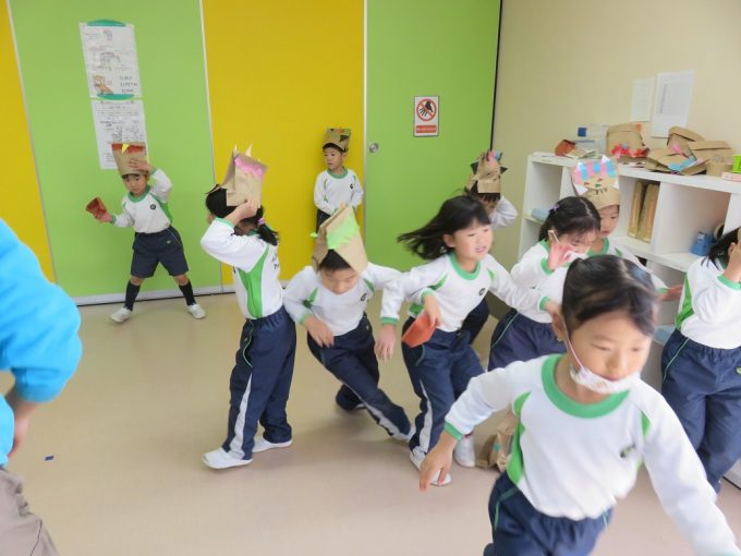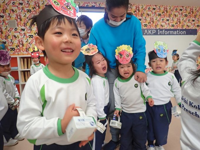 A scary goblin came today. Everyone was saying “Goblin, goblin go away!”, while throwing the beans to drive away the scary Goblin.