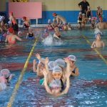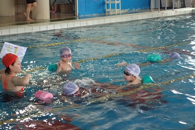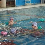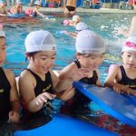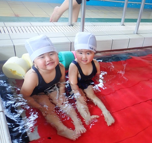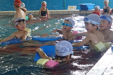 Today the kids practiced the usual walking, jogging, and jumping in the water, crocodile and crab walk, slide, flutter kick and floating with head in the water (using a floatation device). Also, the kids started practicing for the upcoming swimming exhibition.