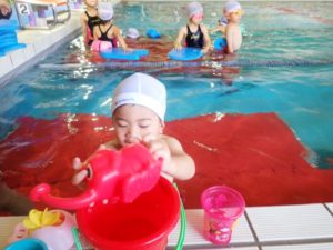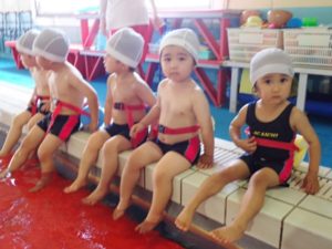 In the crab class, they practiced crocodile walk with the coach assistance. More children can put their faces in the water.