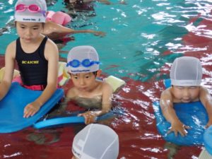 In the 13th grade class, they were able to swim keeping their head in the water. They were able to swim by concentrating on putting their head firmly in the water, turning their arms, and doing flapping legs.