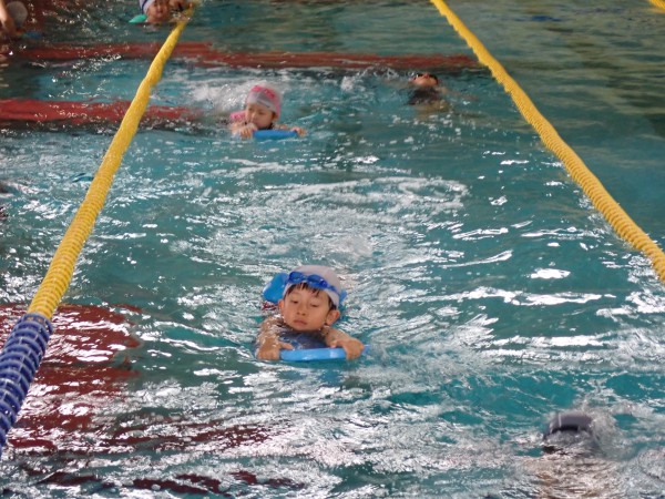 In the 13th grade class, they practiced crawling using kickboard. They were able to swim by focusing on making powerful flapping steps while rotating their arms.