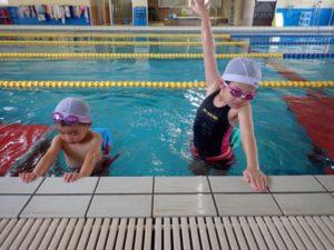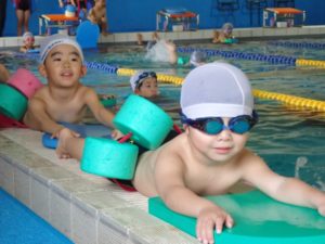 In the frog class, the children were familiarized to float. They all got better at keeping their body straight while floating.