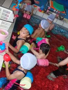 Each grade had free time to play, and the children enjoyed playing in the pool.