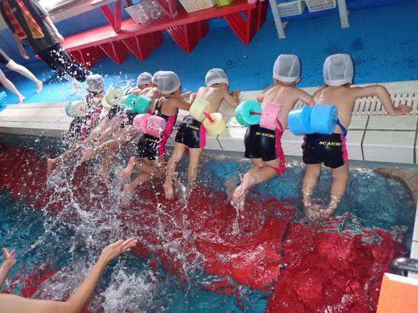 In the frog class, children are now able to challenge themselves to keep face under water for 10 seconds straight. They started to float with straight arms and legs using beat board recently and they are getting better day by day.
