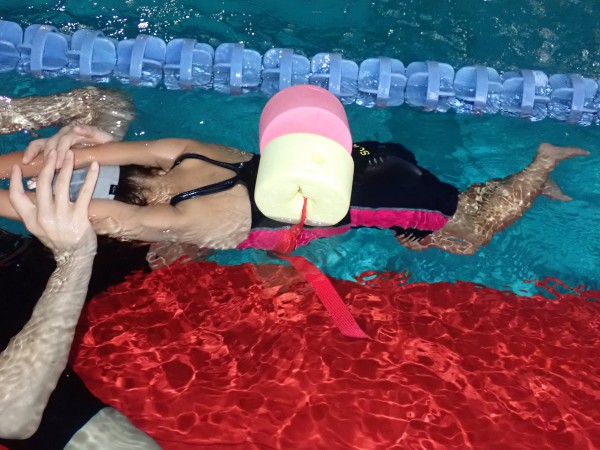 In 14th grade, they swim with flapping legs. Today they were able to swim by keeping head firmly in the water and making strong flapping movements without bending knees.