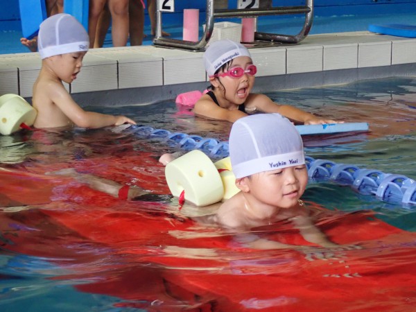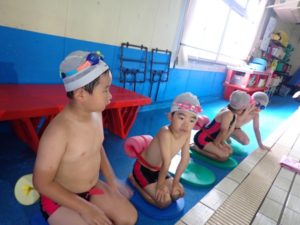 In the 14th grade class, we performed activities such as mask-covering and batashi. We swam a distance of 5 to 6 meters, while doing powerful leg flaps.