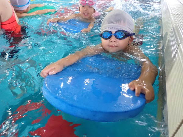 In the level 11th class, they practiced breathing during arms rotation. With the coach’s help, children were able to swim enthusiastically, turning their faces to the side to breath.