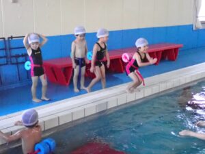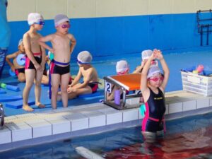 In the frog class, we were able to practice keeping our heads firmly in the water when swimming with our faces in the water. Some children couldn’t catch their breath and looked up midway through the swim, but with the encouragement of their coach, they were able to swim with enthusiasm.